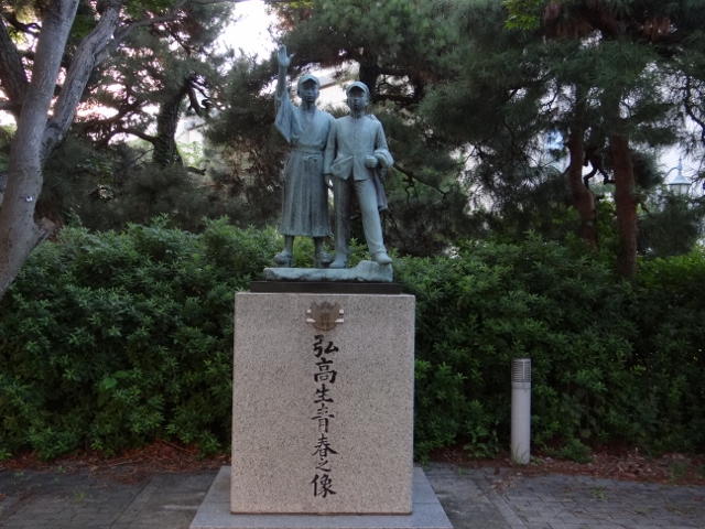 調べてみれば、「弘高生青春之像 (PDFファイルへのリンク)」は、1989年、旧制弘前高等学校 創立70周年を記念して建てられたものという。旧制弘高は、弘前大学の前身である。